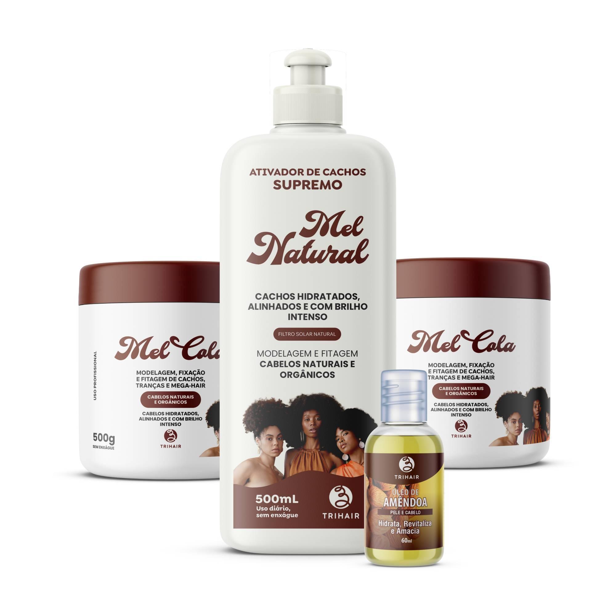 2 Mel Cola Trihair - 500g + Ativador Mel Natural + Óleo Capilar Amendoa